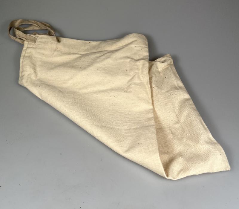 This pair of tins were manufactured in 1942, however, heavy tinning to the body of the pan has obliterated the manufactures name. As is standard the steel handles are attached to the main body by rivets and the pair come with an also un-issued buff/white cotton, draw string, storage bag.