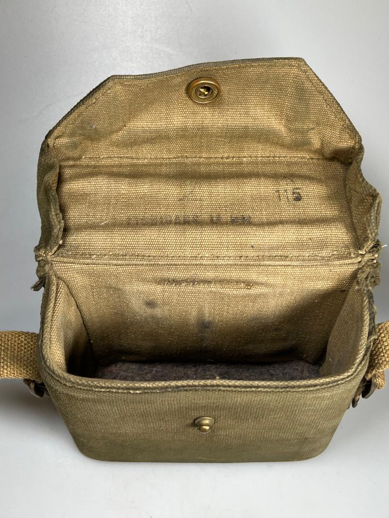 This example is the second pattern, with the canvas neck strap and webbing carry case and webbing shoulder strap, both dated to 1944.