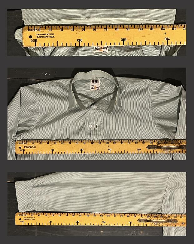 Please bear in mind that shirts of this period are cut in a very 'full' manner meaning that a chest measurement of 22" will fit around a 36-38" chest, depending on desired fit, smaller collar size is ok when worn with to button undone.