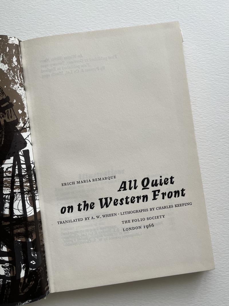 ‘All Quiet on the Western Front’, Erich Maria Remarque, 1966 reprint, Folio Society, London.