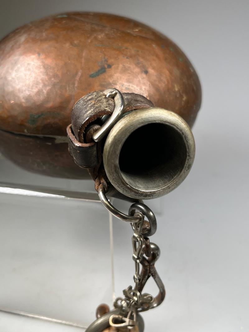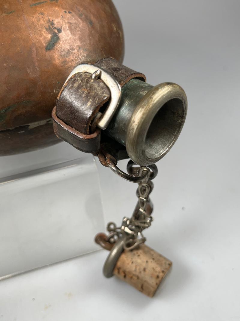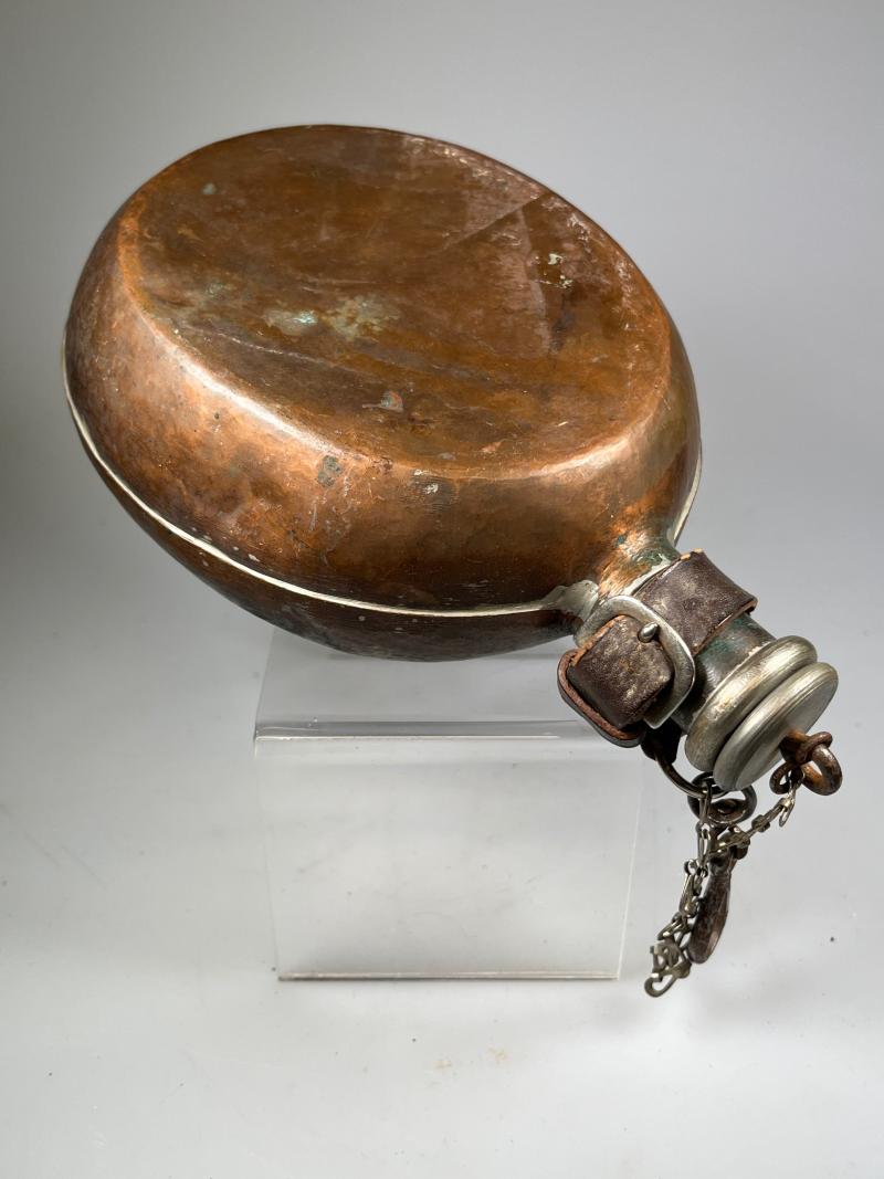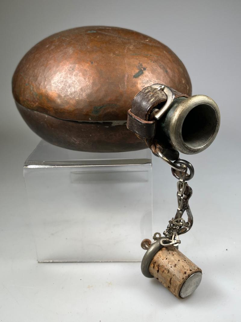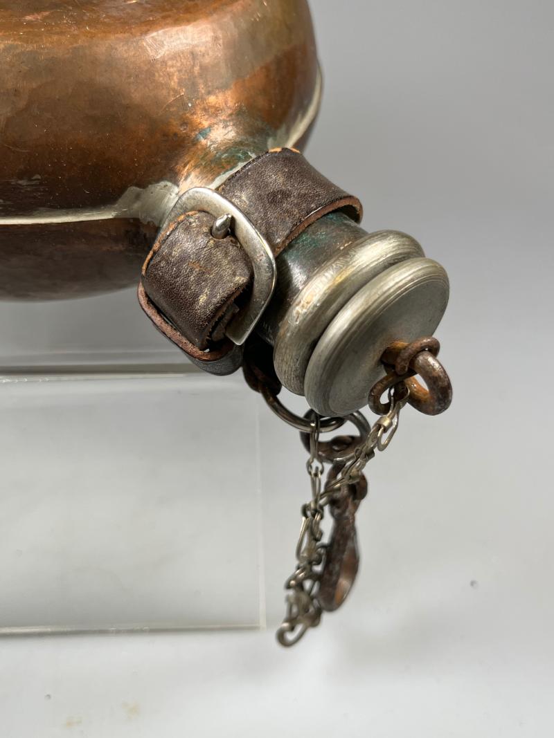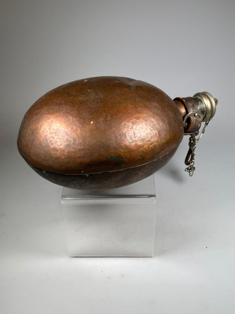Canteens were issued to combatants of both sides in the conflict, however, this unusual canteen manufactured from copper, as such, was probably in use by Republican forces.