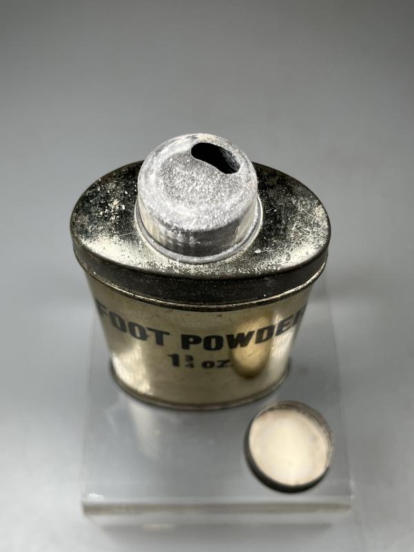 Foot powder was an essential issue of the British army and was used to soldiers to keep their feet dry and free from fungal infections. All the standard tins held 1.75 ounces of powder and can be found in oval, rectangular and oval tins.