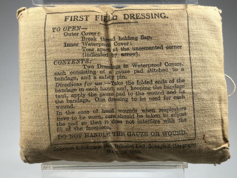 Was £35 now £30 A clean early example of the Field dressing, manufactured in March 1939 by Johnson and Johnson Ltd. Priced to reflect excellent condition and very early date.