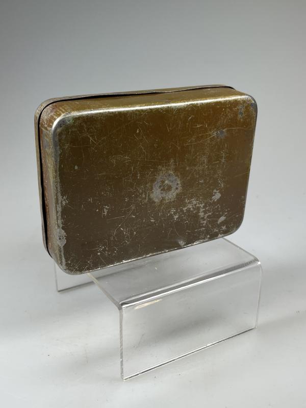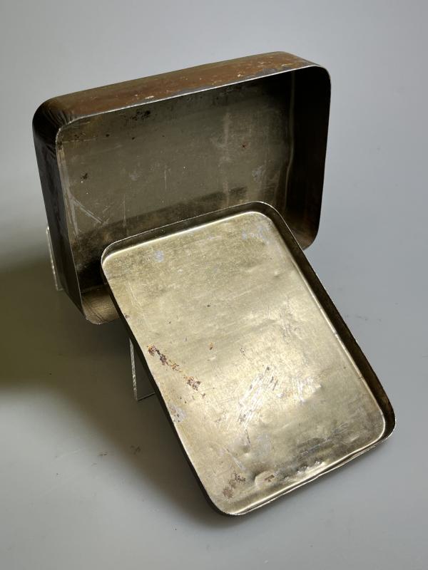 This example is in ‘FAIR’ condition, with overall rust spotting and scratches consummate with age and is now a rare survivor; many were kept to store cigarettes and other ‘pocket’ items that needed to be kept dry. and is now a rare survivor; many were kept to store cigarettes and other ‘pocket’ items that needed to be kept dry.