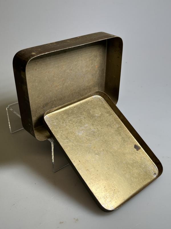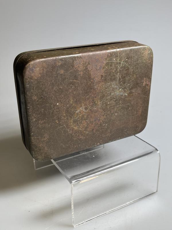 This example is in ‘POOR’ condition, with scratching and rust spotting consummate with age, few if any ‘dents’ and fading to the lettering, is now a rare survivor; many were kept to store cigarettes and other ‘pocket’ items that needed to be kept dry. and is now a rare survivor; many were kept to store cigarettes and other ‘pocket’ items that needed to be kept dry.