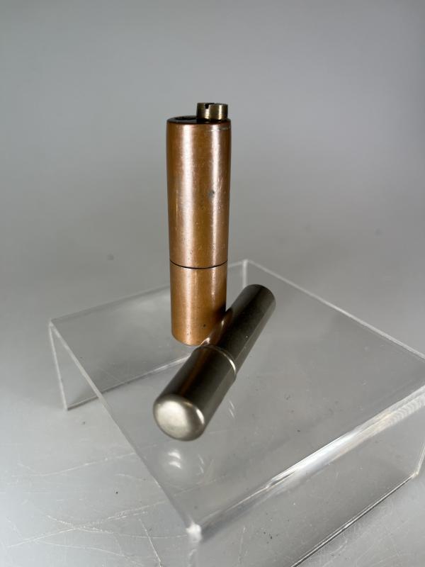 Small petrol lighters were not issue items but were carried, at least by the end of the war, in the pockets of most Tommy’s. Being able to light a flame is a very useful thing for a soldier so that he can smoke a cigarette, ‘brew-up, heat through some food or give himself some light.