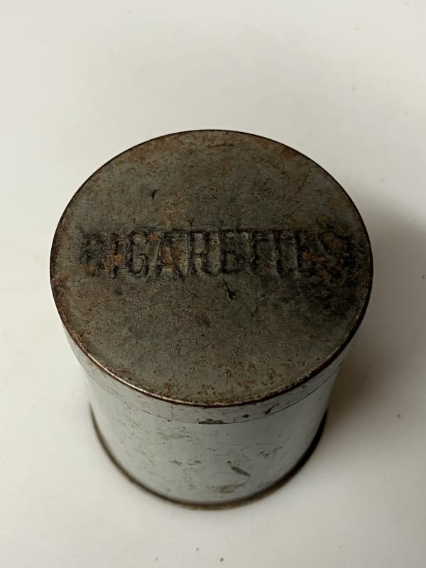 WW2 British Army Cigarette ‘Compo’ Ration Tin (Larger Format; Cylindrical).