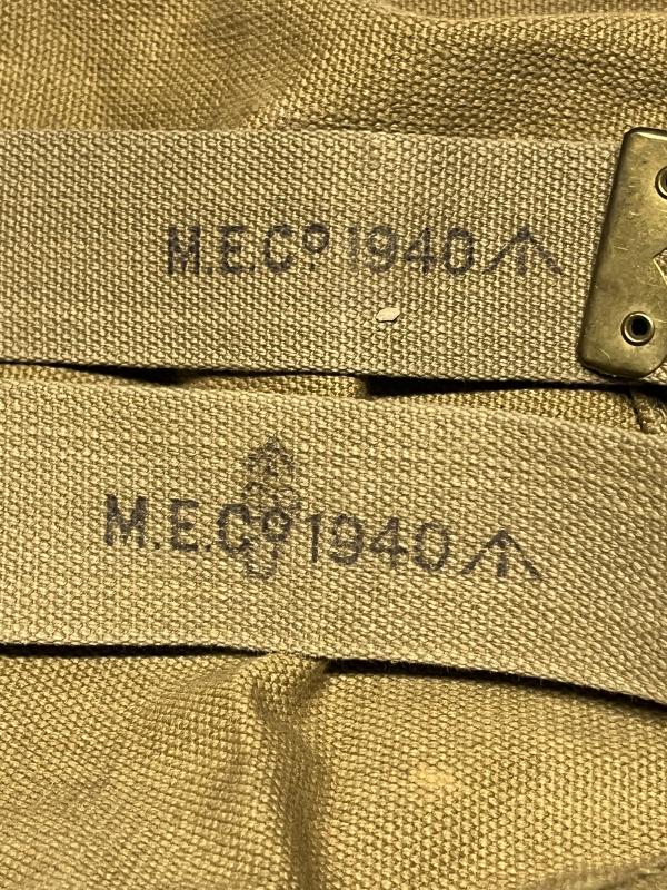 These examples were all manufactured by ‘MECo’ (Mills Equipment Co) in 1940. Both pack and ‘L’ straps appear to be in unissued condition with only minor storage marks, priced to reflect early war date and excellent condition.