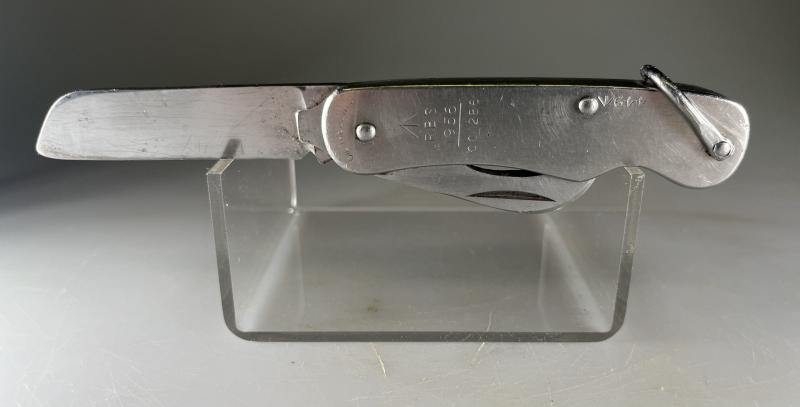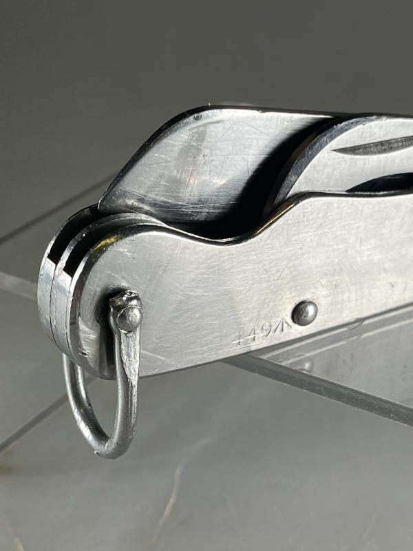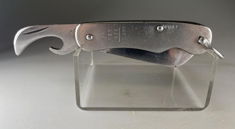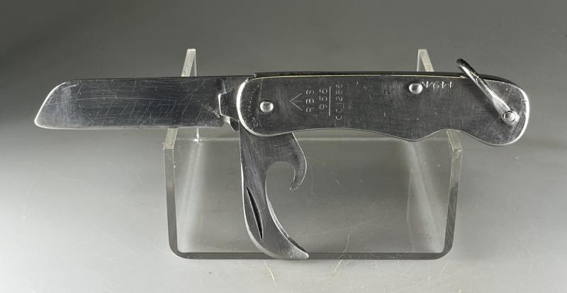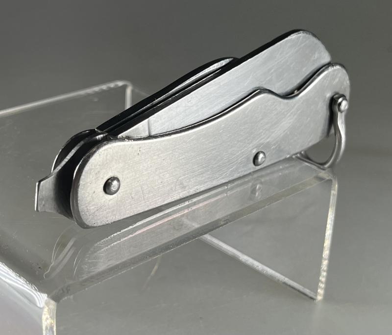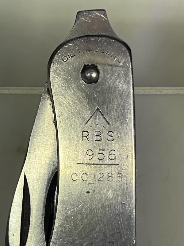 The full range of clasp knives, colloquially known as Jack or Pen knives, that were issued to British and Commonwealth forces can vary from manufacturer to manufacturer, however, those produced during the war will normally have the broad arow stamp, date, and makers name or initials. Knives with the marlin spike were generally, but not exclusively, issued to airborne, commando or naval personnel. The purpose of the spike being to work effectively with rope, line, or cords. Common features to clasp knives included, though not always, were a single edged cutting blade, slot type screwdriver head with a lanyard ring at the opposite end. Except for the navel pattern knife all models had a separate blade that served as a can opener. Later war models can be identified by their flat metal slab sides and are considered to be part of the 44 Pattern issue of equipment intended for use in the Far East.