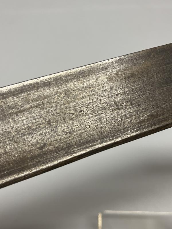 Priced to reflect rarity and condition with some minor ‘discolouration’ to the blade and a mint unissued scabbard.