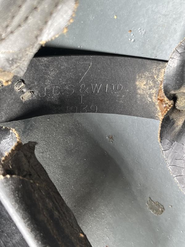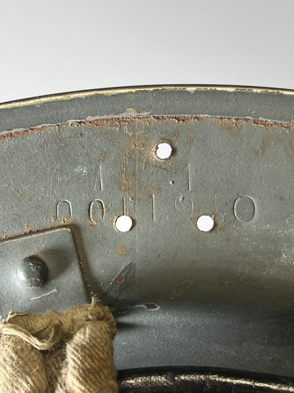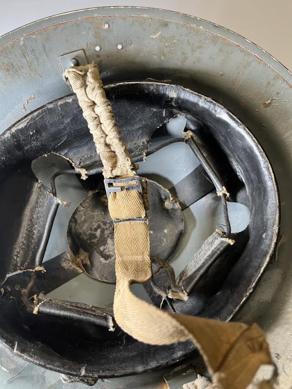 This No.2C shell, designated ‘2C’ by the addition of three holes to each side of the brim and being made from an inferior steel, was manufactured by BMB (Briggs Motor Bodies Ltd of Dagenham) in 1940 with a size 7 liner manufactured in 1939 by J Compton Sons & Webb Ltd (London). Retaining its original factory grey green paint with ‘W’ stencilled to the front and ‘K’ to the front and rear inner rim, I presume these stands for post K? Priced to reflect very good overall condition with ‘minor wear’ and limited paint chipping.