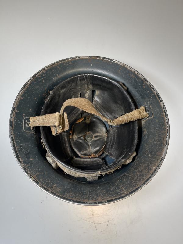 During early 1938 contracts were placed with three companies to begin the production of the required helmet shells: Harrison Bros. & Howson., William Dobson and Son. And Joseph Sankey & Sons Ltd. with liners being manufactured by Everet W. Vero & Co and Helmets Ltd. Helmet assembly was given to P.B. Cow & Co Ltd who began the work in late September 1938. Initial production was earmarked for the Police and Fire Services with Air Raid Precautions and the Armed Services being supplied from early 1939. These first helmets were painted in various colour schemes at time of manufacture to meet different requirements; Police were painted constabulary blue and fire service being a smooth grey green. Initial air raid precautions were also painted grey green, but this was later changed to black. Service helmets, for all three departments, were initially painted ‘khaki grey’ but in 1943 this was changed to ‘dark brown’.