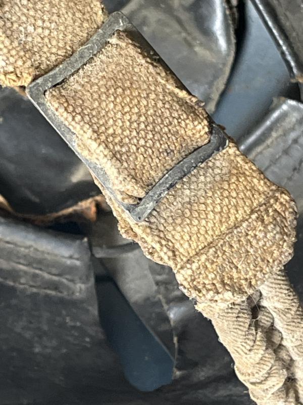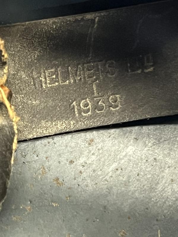 This shell and liner example dates to 1939 with other components dating from 1938 (refer to images). The shell was manufacture by Harrison Bros. & Howson (Sheffield) with the liner being manufactured by Helmets Ltd (Wheathampstead). The shell still retains its original factory ‘constabulary blue paint’ with the word ‘POLICE’ being applied to the front. Priced to reflect some rust spotting and minor paint loss.