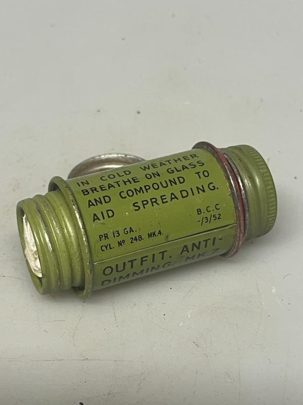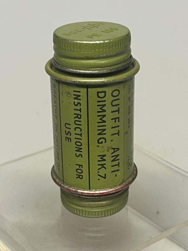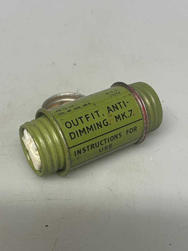 In 1938 two new types of anti-dimming samples were tested; Liquid (G1: being a brown, alcohol-water solution) and Paste (P1: based on a substance called Turkey Red Oil), both were found to give good visibility for about an hour, but the paste appeared more practical and became the basis for future outfits.