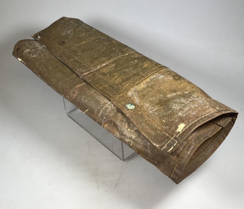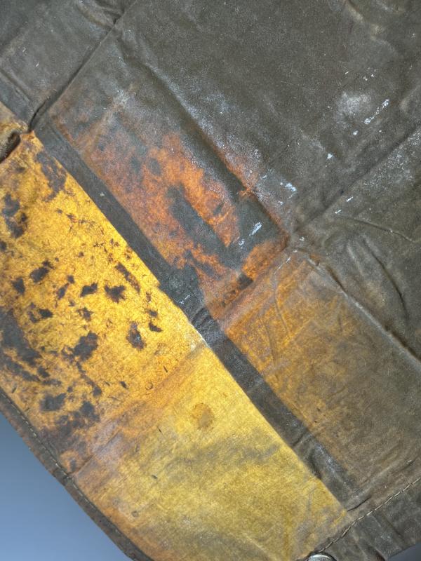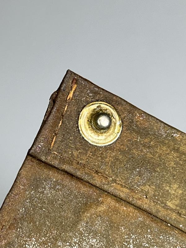The Anti-gas wallet was, like the anti-gas cape, made from oil cloth and made to protect the AB64 and other small personnel effects such photo’s, etc. The first pattern was 12 ½ “ by 8 “, when fully open and 12 by 4 when folded once and 6 by 4 when folded twice to fit into the breast pocket of the battle dress blouse or trouser pocket. The closure flap ran the entire length of the wallet with a 4” overlap to be fastened by a metal press stud. Later patterns dispensed with the press studs as the overlap was deemed sufficient to keep a good seal. By 1942 they were deemed unnecessary and ceased to be issued.