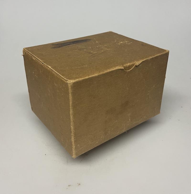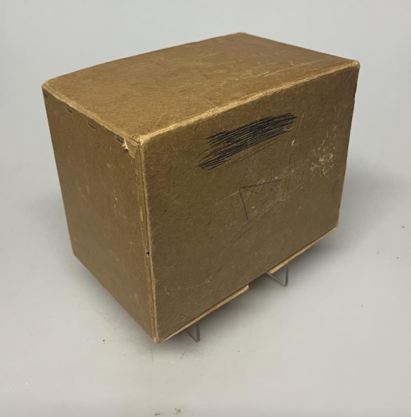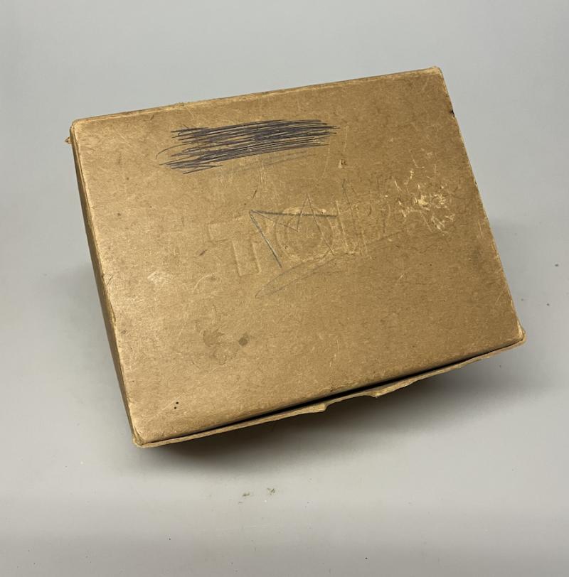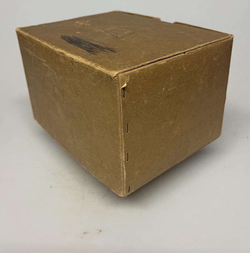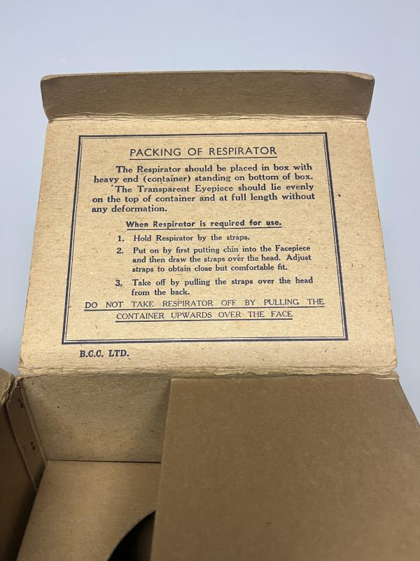 Gas masks were issued in simple but sturdy cardboard boxes with a strip of linen or string to be worn over the shoulder.