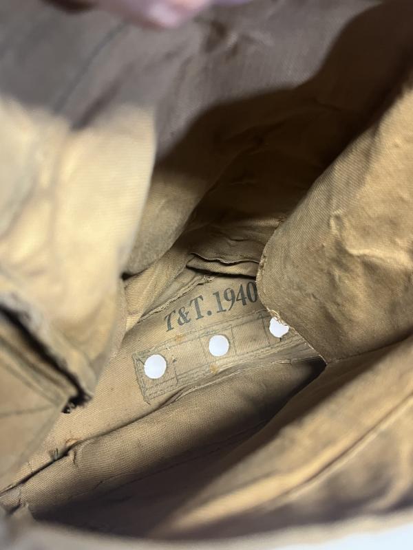 A rare economy and rubberised respirator haversack. Manufactured by T&T in 1940 for possible Home Guard use.