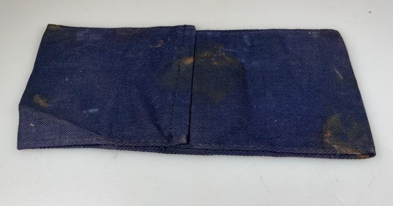 Manufactured from dark blue cotton with printed yellow title ‘Fire Guard, this example is in used condition with some staining to both front and rear.