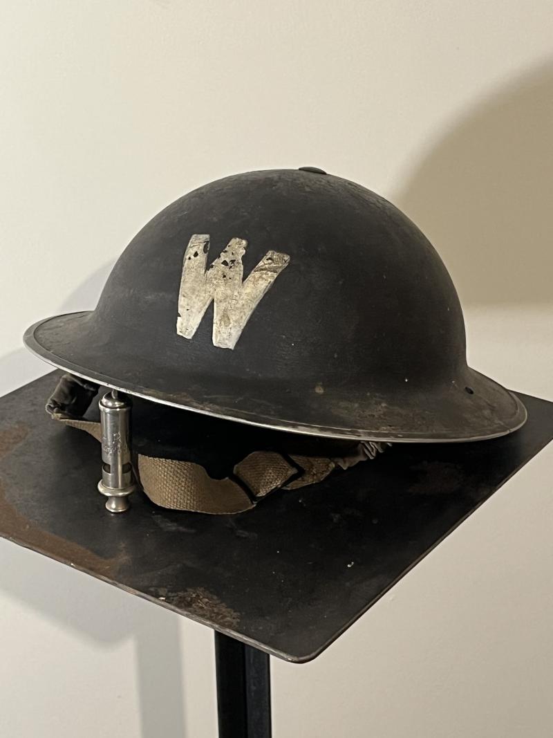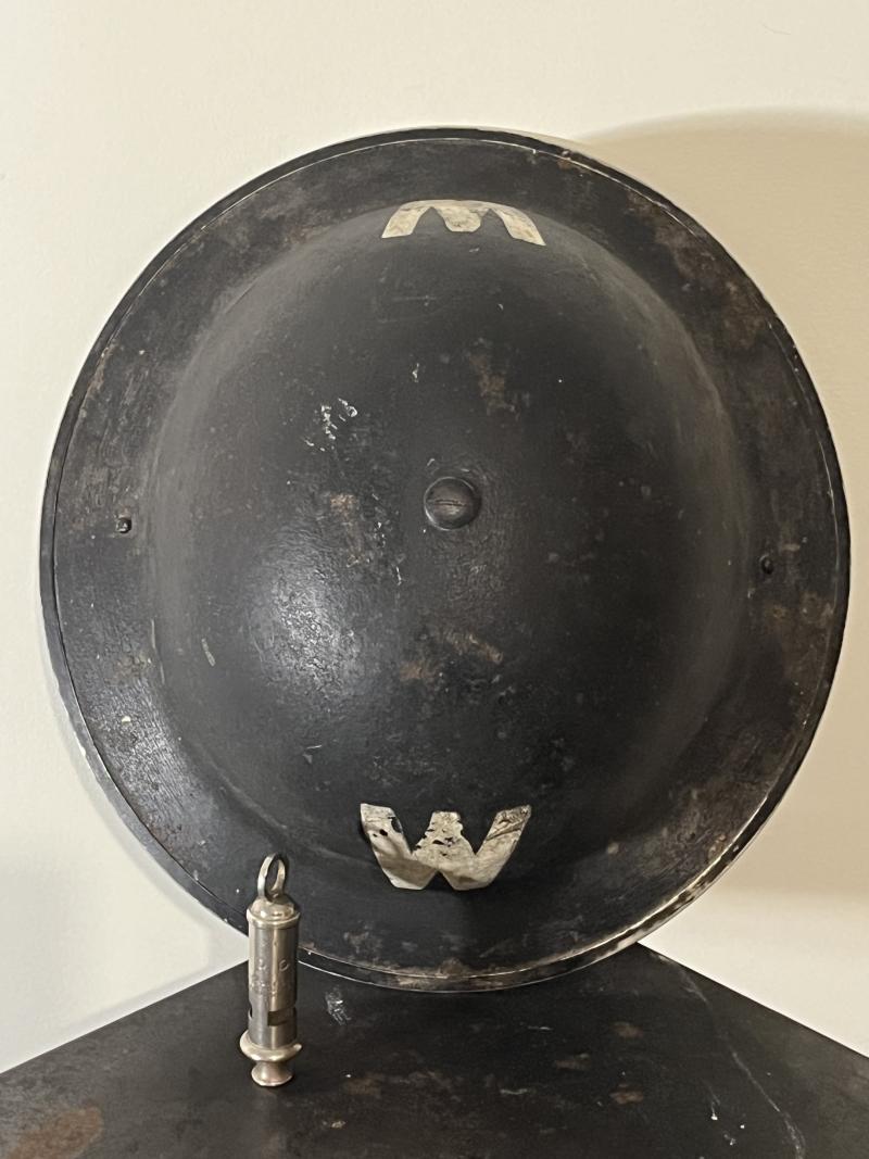 WW2, British, ARP/Wardens Whistle and Helmet Grouping, London.