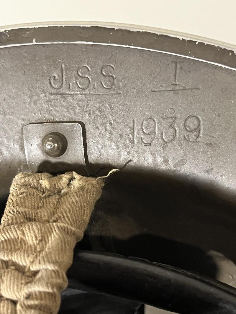 2. Wardens helmet, as designated by the application to the centre front by the letter ‘W’, London helmets had the addition of an additional designation to the rear of the helmet, has a 1939 manufactured shell made by J.S.S.