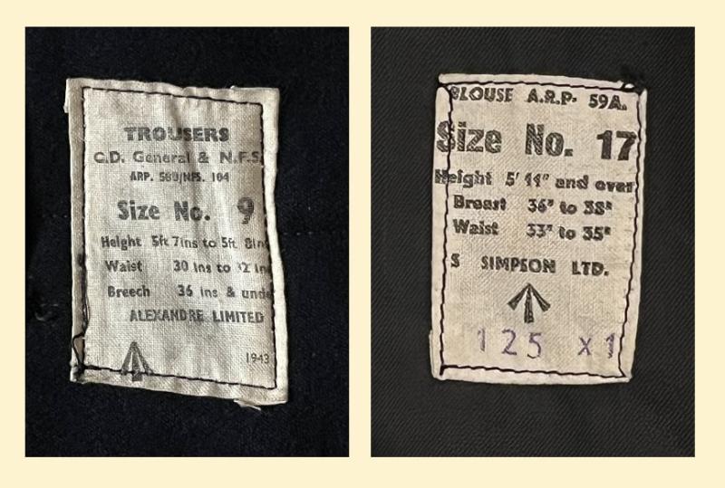 This pattern of trousers was introduced in July 1941 and used by various arms of the Civil Defence including ARP Wardens. Made from a very dark blue serge wool they