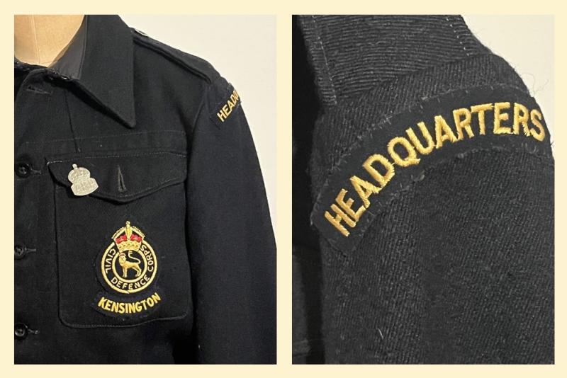 The blouse features all its original plastic buttons, buckle and fastenings with little sign of wear and use. It is badged to Headquarters, Kensington, London and also has the ‘Kings Crown’, Civil Defence Corps breast badge to the left breast pocket. The service was stood down in May 1945, however, with the growing tensions of the Cold War, in 1949, the Civil Defence Corps (CDC) was set up/reactivated, with the badge coming from this era. Denoting the Kings Crown it therefor dates this badge from between 1949 to 1953. Of interest is the original ARP badge to the left breast pocket flap, a common practice to those that saw war service in the Corps and wanting it known they were an ‘old sweat’.