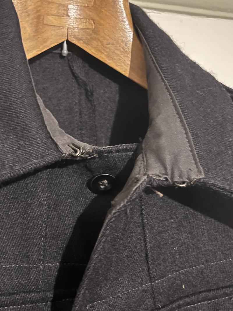 This pattern of blouse was introduced in mid-1942 as an austerity measure and replaced the earlier pattern which did not have exposed buttons. Officially designated 'Blouse A.R.P 59A', this pattern was the heavier wool intended for use with Rescue party workers.