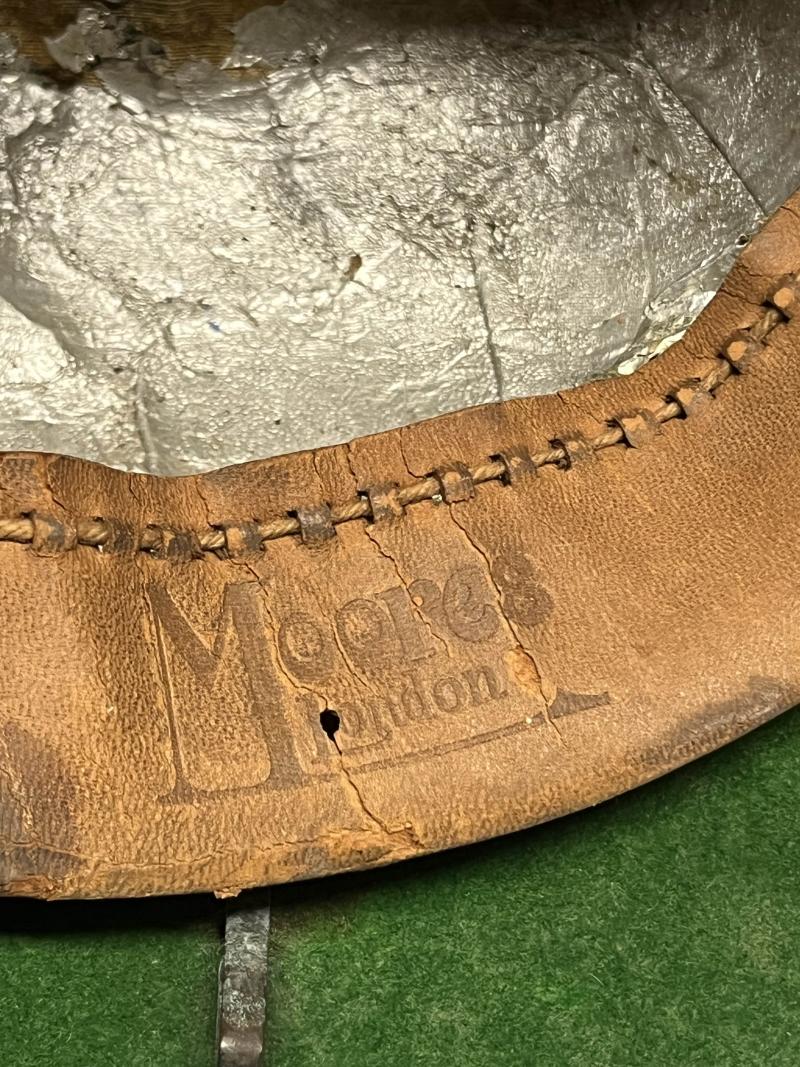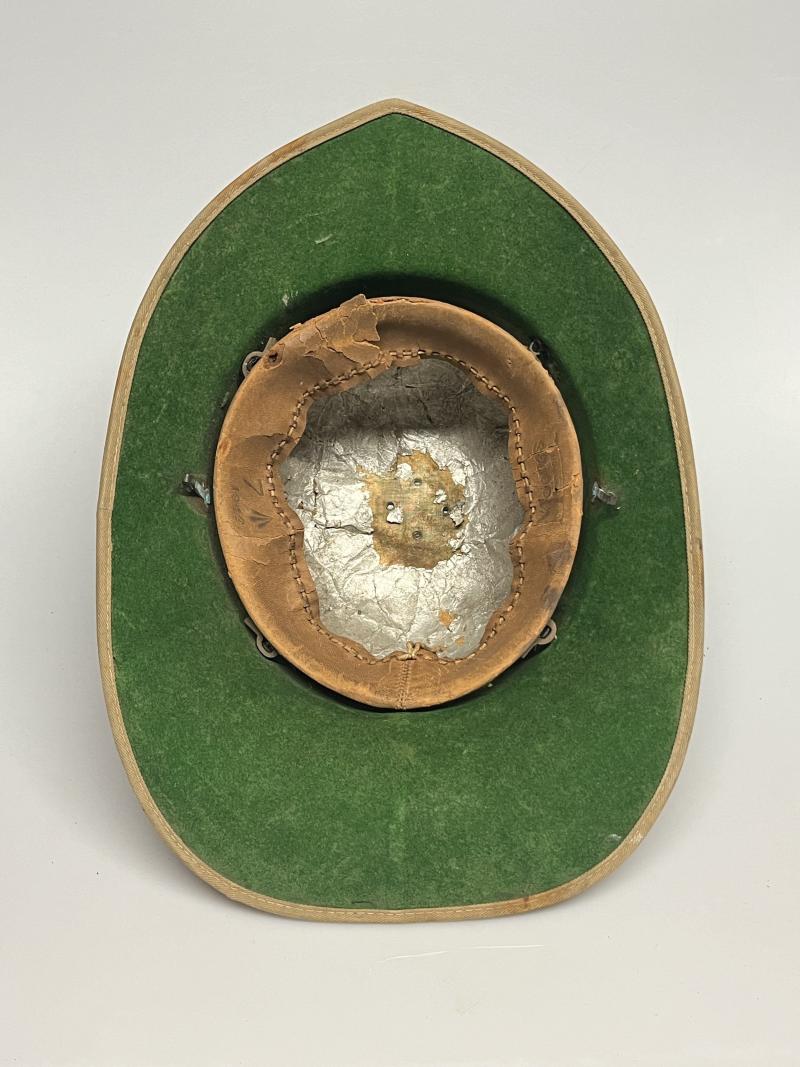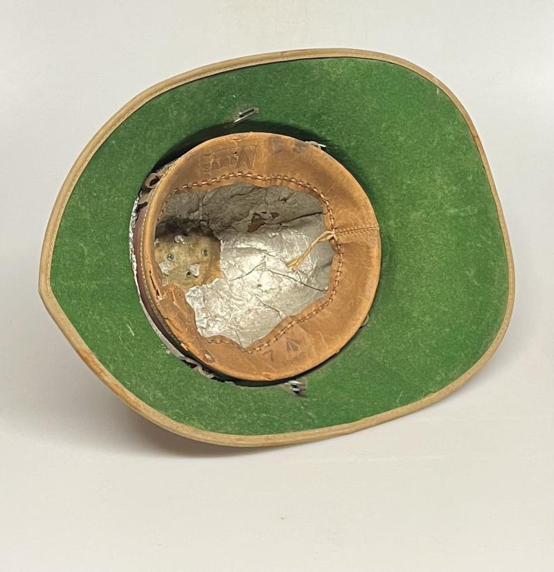 Slightly tatty but sound, size 7, Wolseley Pattern Helmet, manufactured in 1942 by Moores of London. It still retains its silver foil liner, to help reflect the heat of the sun, but as is very common, is missing its leather chin strap.