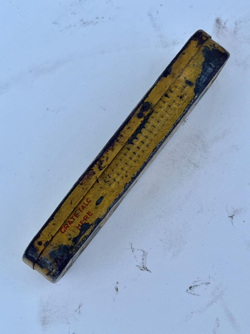 A lovely little extra for that WW2 bicycle, this Dunlop puncture repair tin, with its original French Chalk tin, would enhance any display and fits into the standard leather tool pouch, which is also available, item number 888888.