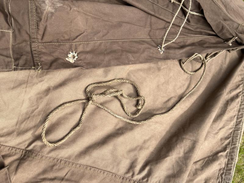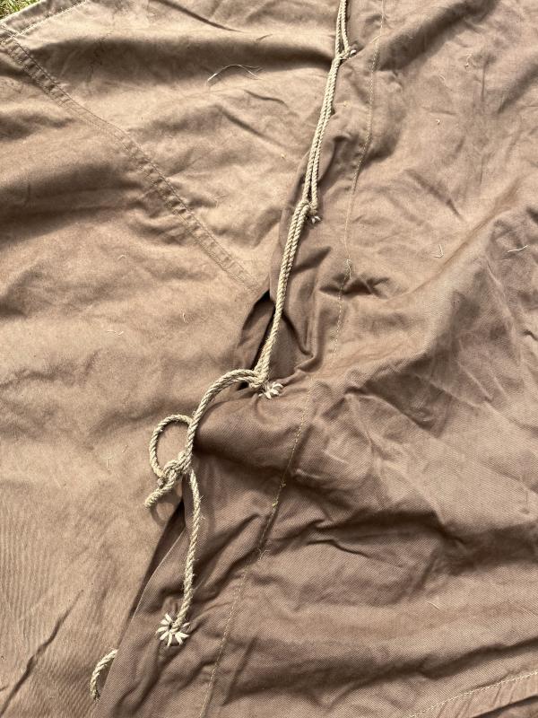 This beautiful 'Choc' brown example comes with all its ties and ropes in good strong condition, a set of pegs, replacement cut poles and a post war storage bag.