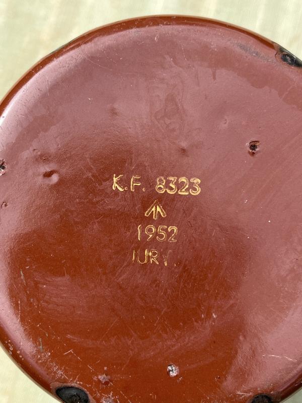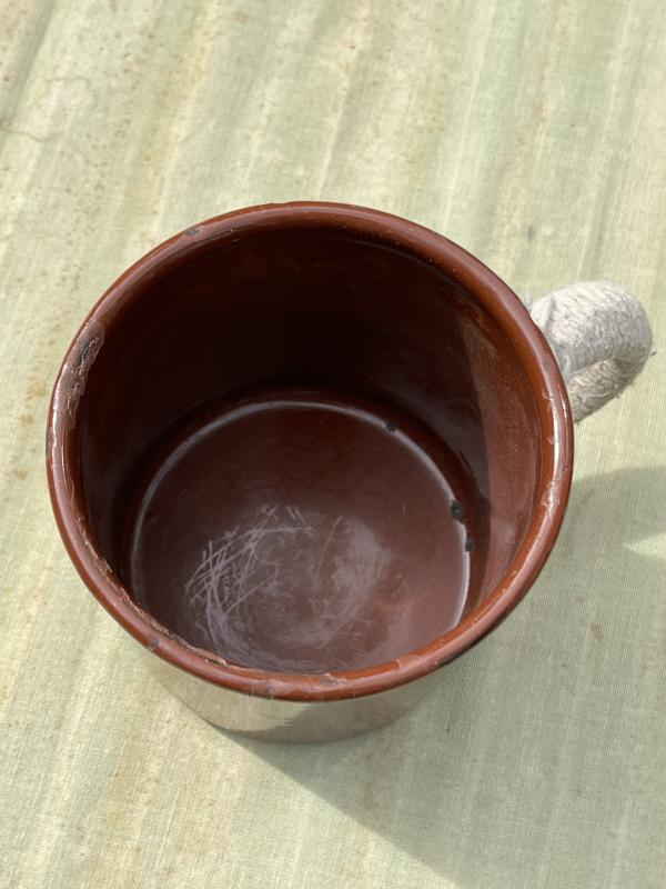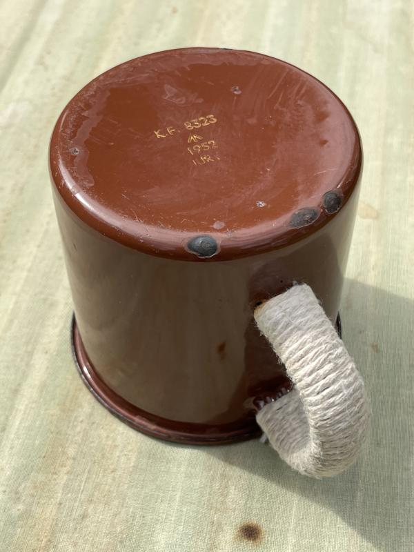 A nice clean example of the issue, imperial pint mug. Board arrow stamped and dated to 1952 this WW2 pattern mug has additional string wrapping to the handle to make it easier to hold when hot or wet.