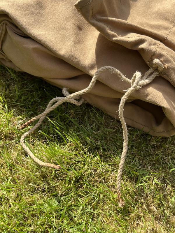 The Bed Roll acted as a water resistant cover to protect the bedding contained within. This palliasse was essentially a thin sleeping pad usually filled with straw, the carrying harness allowed this bulky item to be carried with ease and kept the bedding items together.