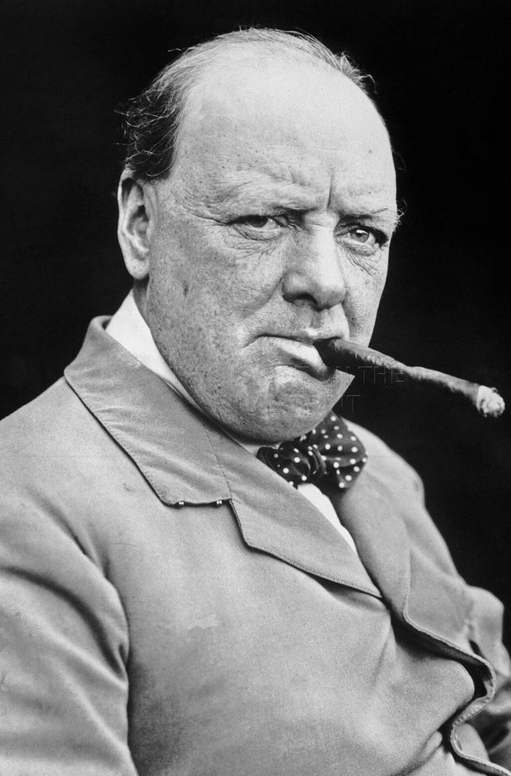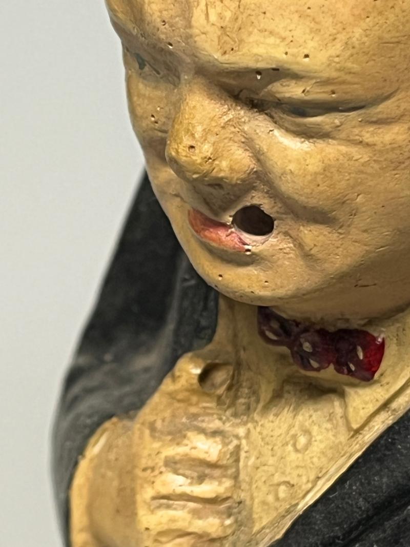 Cast in plaster and hand painted propaganda figurine of Winston Churchill, still retaining his iconic cigar.
