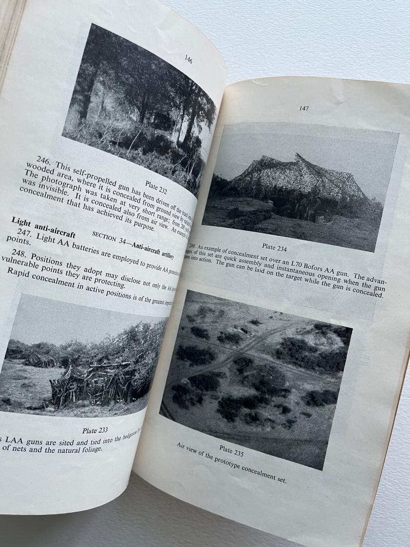 Cracking little manual with lots of WW2 photographs, explains the art of concealment for the individual, units, aids to concealment, of weapons, vehicles, artillery, and communications.