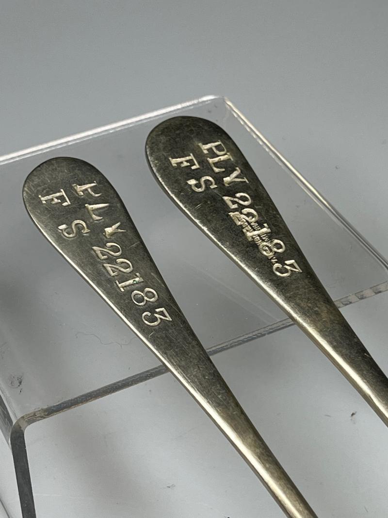 A good clean pair of what appear to be private purchase fork and spoon, service number and unit marked: