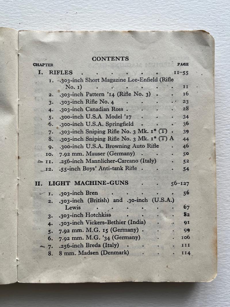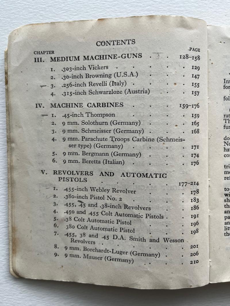 This manual has chapters covering rifles, light & medium machine guns, machine carbines, revolvers, and pistols.