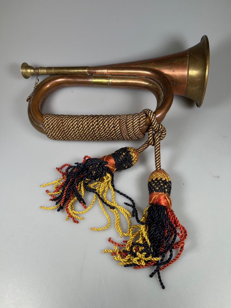 Early to mid 20th Century grouping of Bugle and Pre-WW1 Book: 'Army Trumpet and Bugle Sounds'.