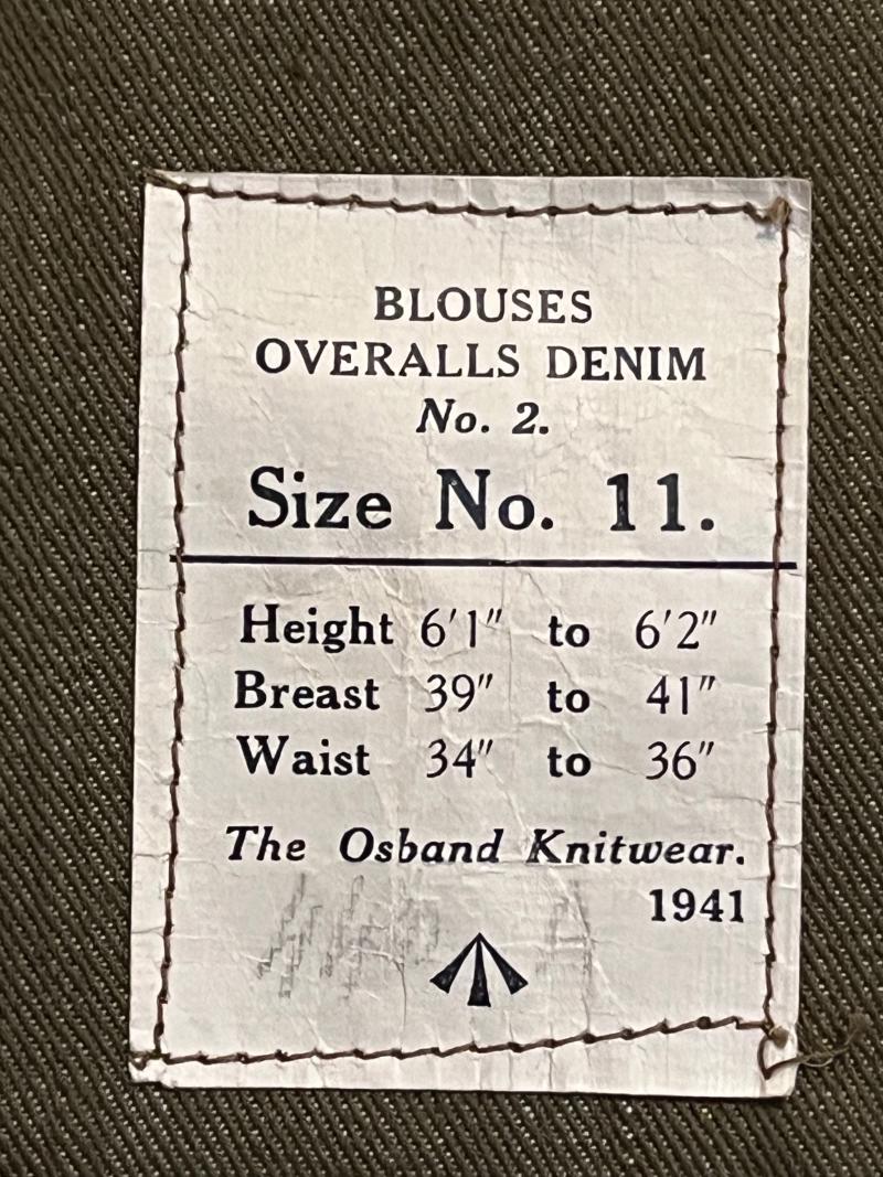 RARE WW2 British, Denim Overall Blouse, Size 11, 1941.